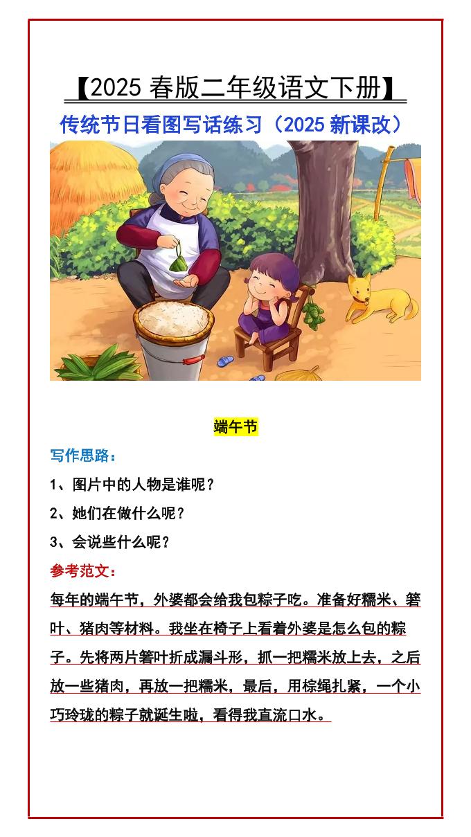 2025春新版【二年级语文下册】传统节日看图写话练习