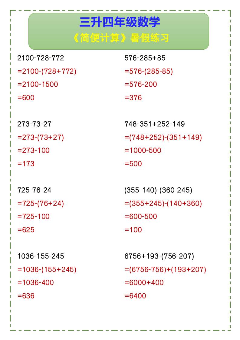 三升四年级数学暑假必做《简便计算难题汇总》-四上数学