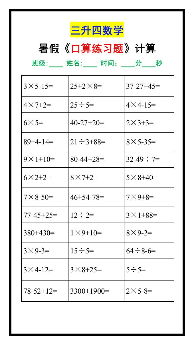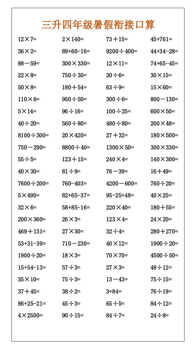 三升四年级数学暑假专项:列式计算练习题-四上数学