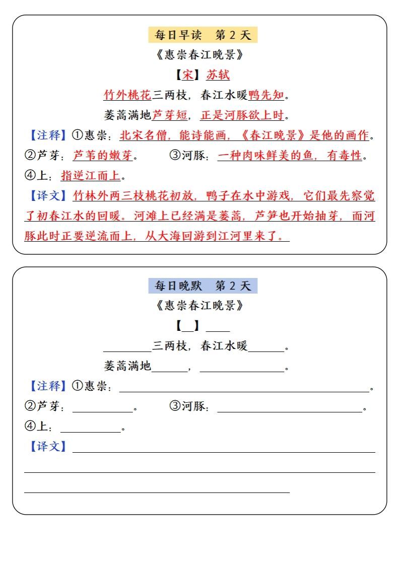 三下语文寒假预习必背内容-每日早读晚默