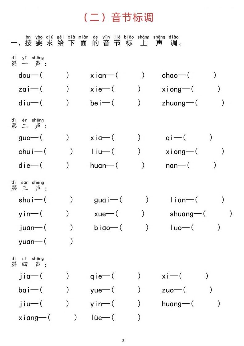 初级 汉语拼音分类过关检测