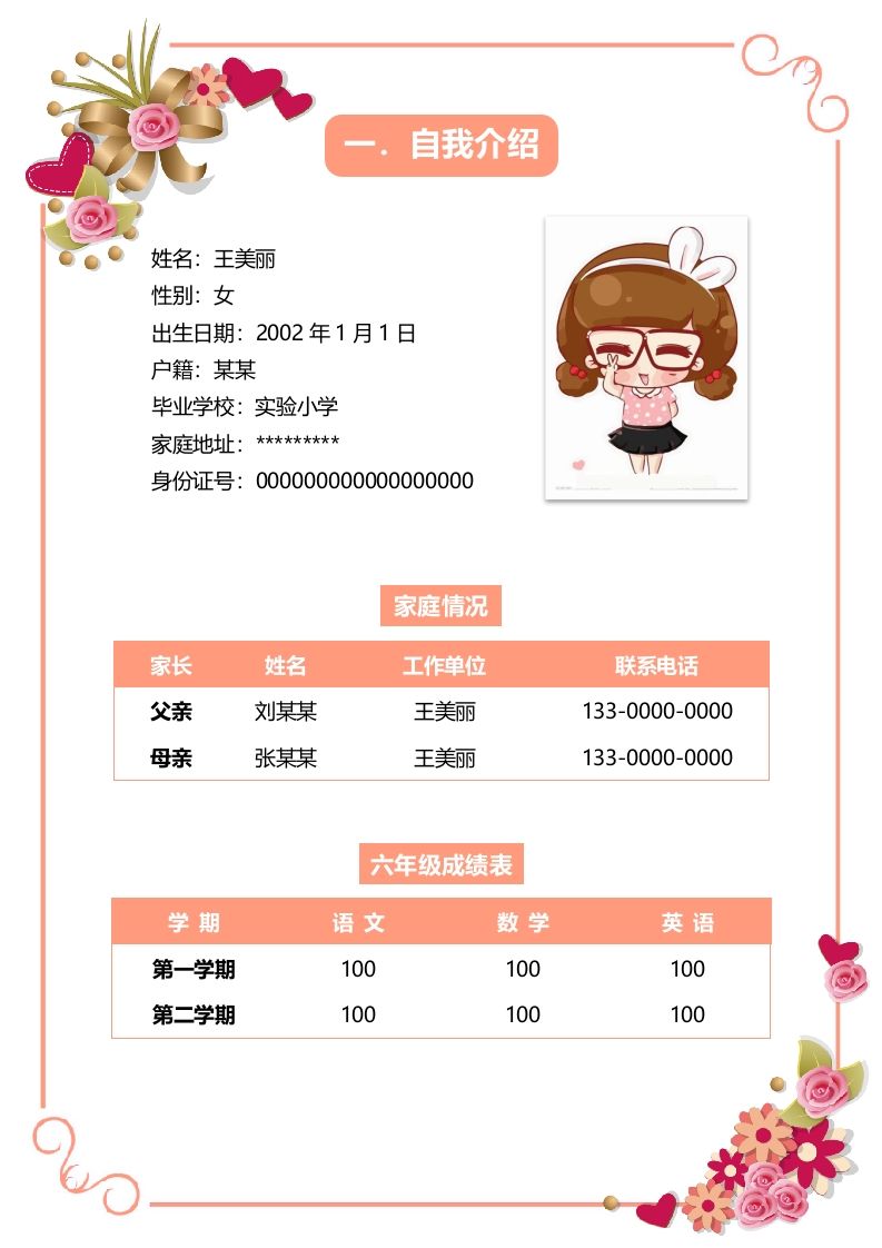 首页 > 全部 > 简历模版 > 多页-小升初简历28