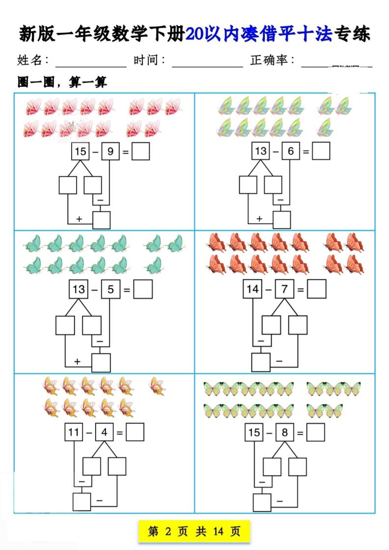 新版一年级数学下册20以内凑借平十法专练14页