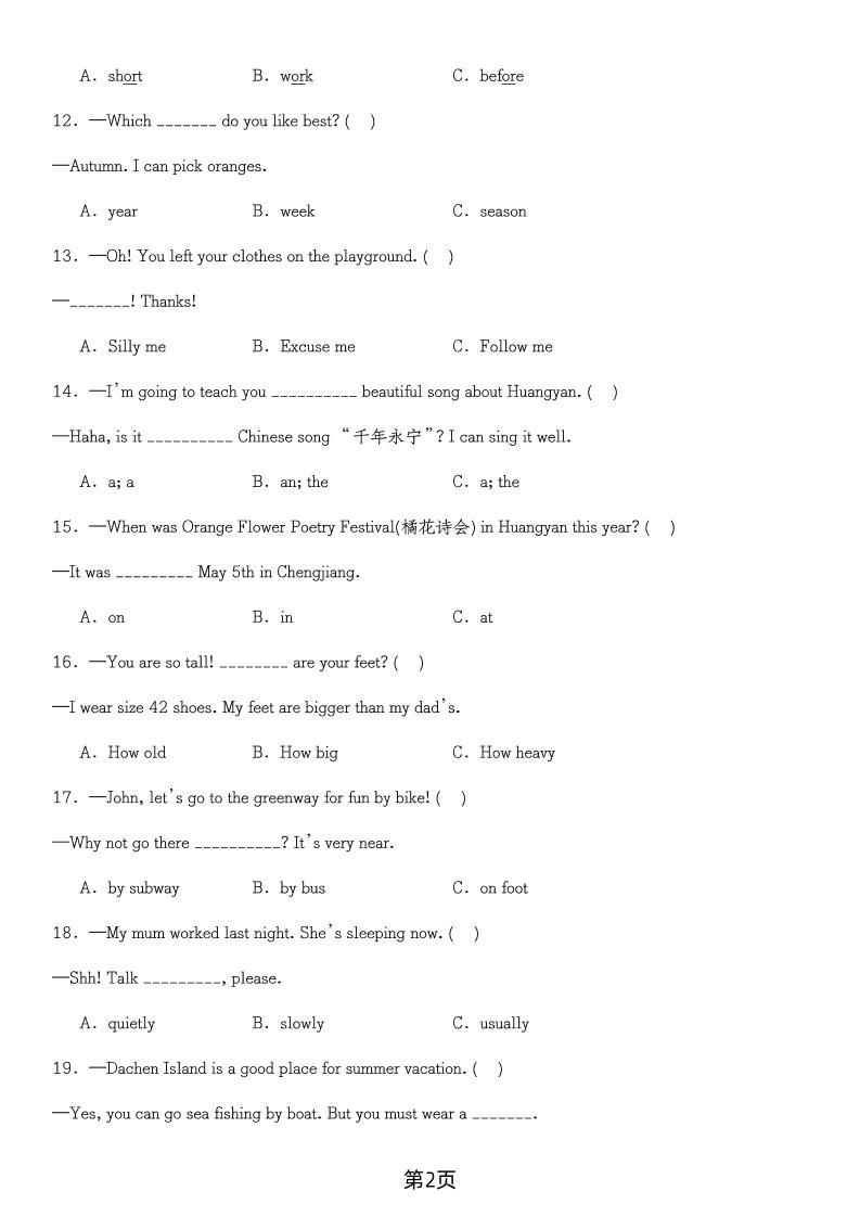 首页 > 全部 > 英语 > 六年级下英语选择题100题(含答案)