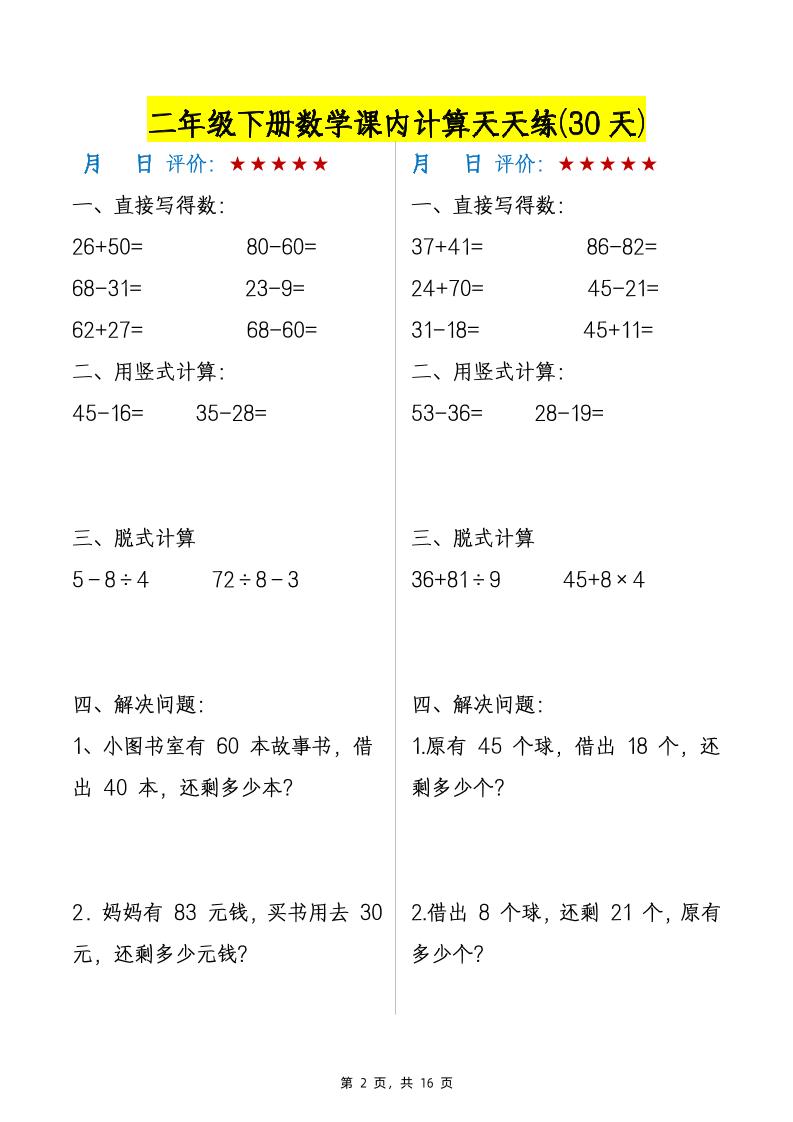 首页 > 全部 > 数学 > 二下数学【课内计算天天练30天】