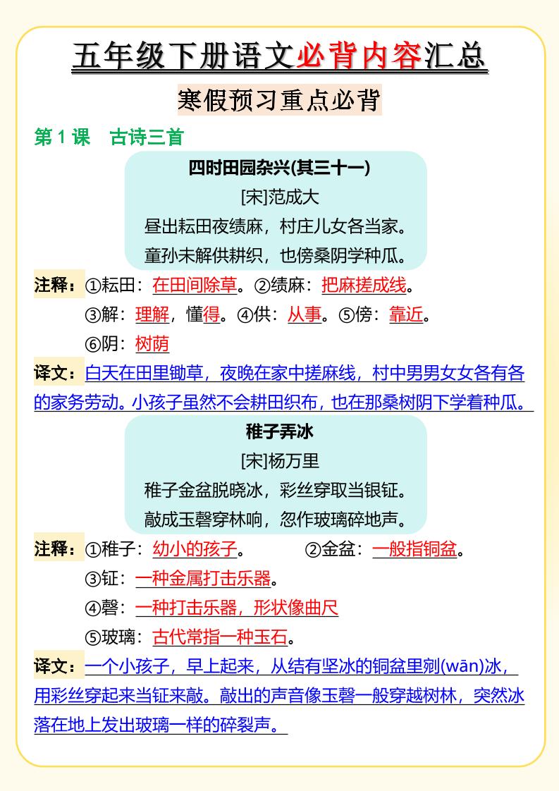 首页 > 全部 > 语文 > 2025春新版五年级下册语文必背内容汇总