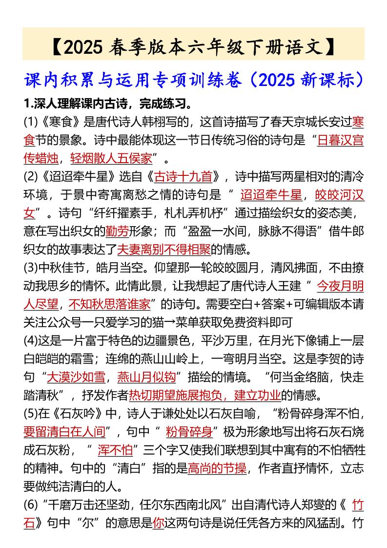 首页 > 全部 > 语文 > 2025春新版【六年级下册语文】课内积累与运用专项训练卷