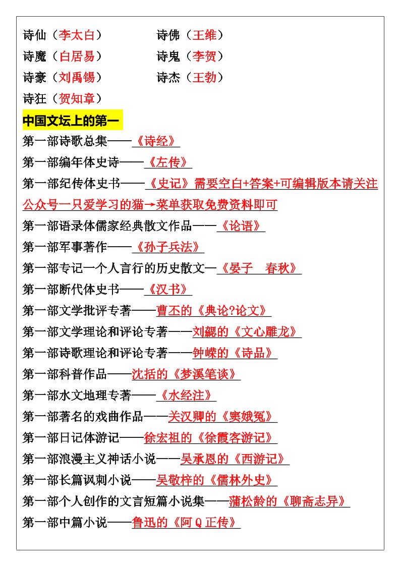 初级 2025春新版六年级语文寒假必掌握的文学知识汇总
