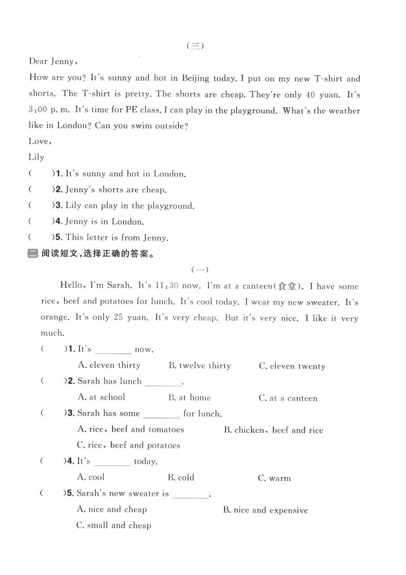 首页 > 全部 > 英语 > 四年级下英语阅读理解专项复习《PEP版》