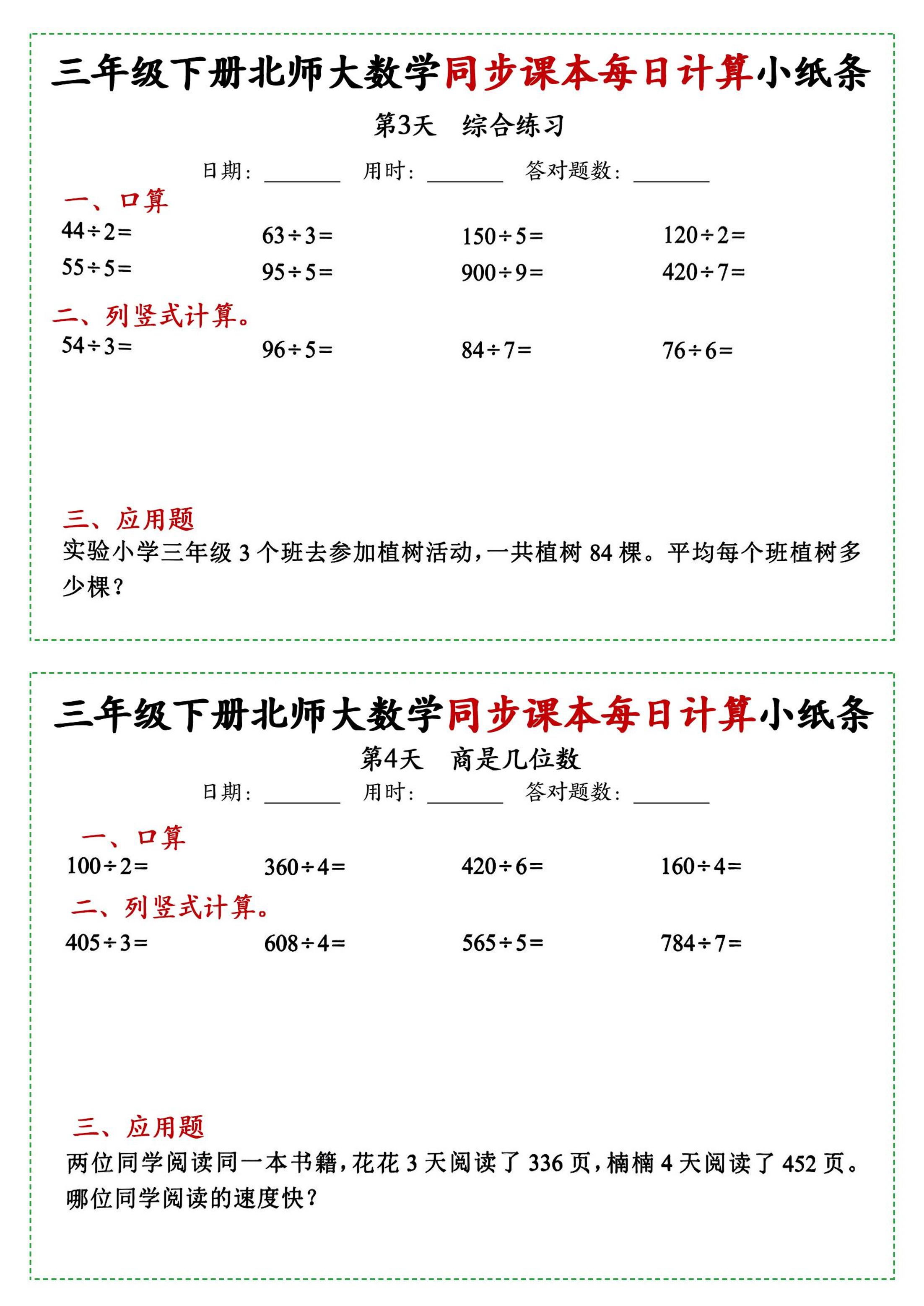 首页 > 全部 > 数学 > 新三年级下册数学北师大版每日一练小纸条65天38页附答案