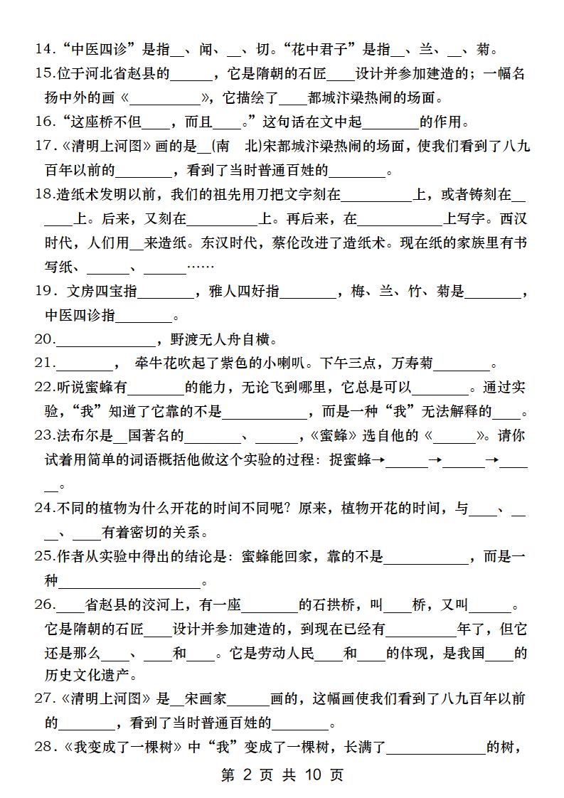 初级 【语文】(最新版)三年级下册按课文内容填空专项