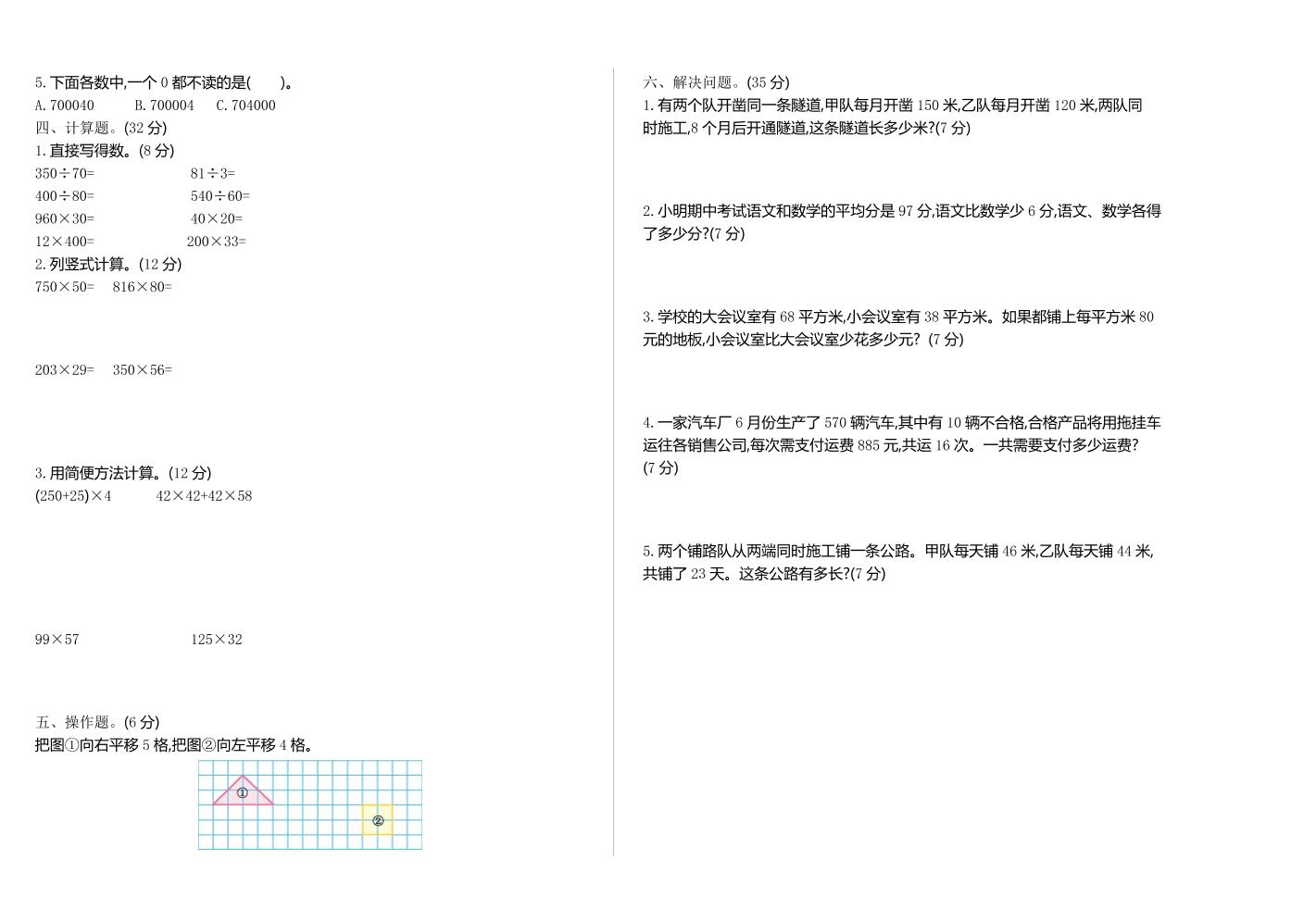 首页 > 全部 > 数学 > 四(下)苏教版数学期末测试卷.1