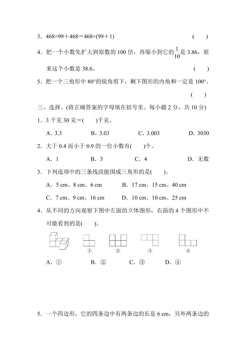 ※四(下)青岛版数学63版期末测试卷.3