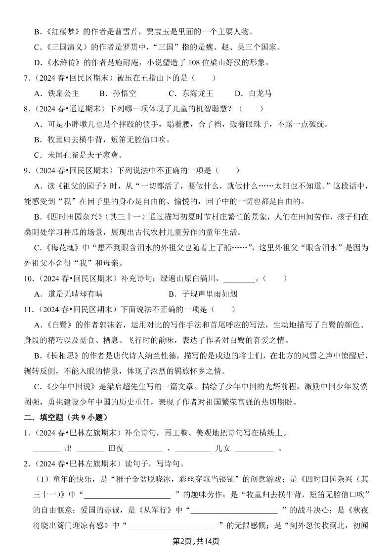 初级 《语文文学常识及课文的识记》