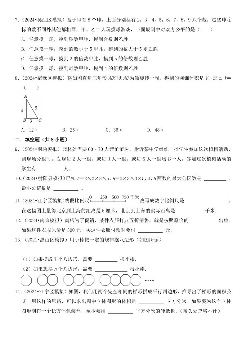 首页 > 全部 > 数学专项 > 《小升初数学真题重组练习卷》