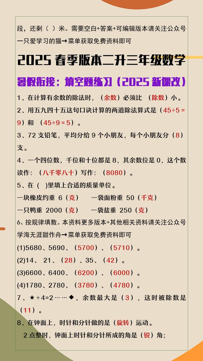 首页 > 全部 > 数学 > 2025春新版二升三年级数学填空题练习