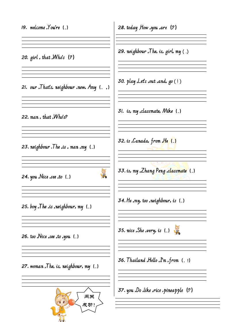 首页 > 全部 > 英语 > 三下人教PEP版英语U1-U6连词成句专项训练-12页-含答案
