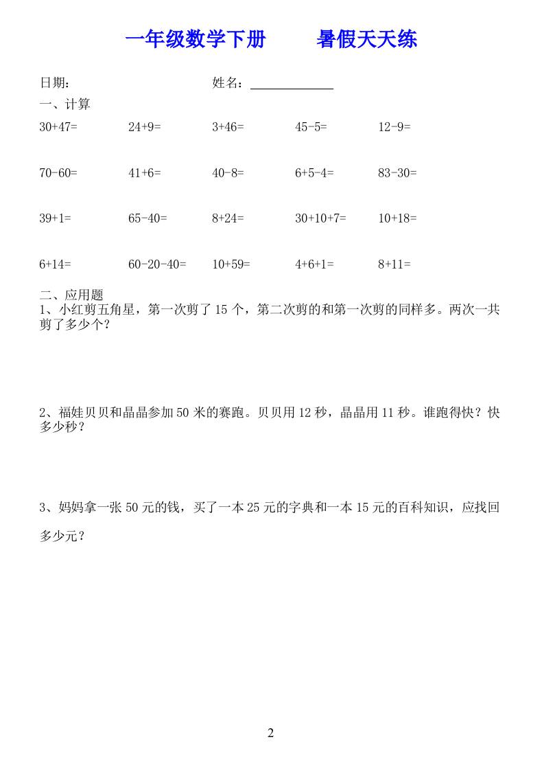 首页 > 全部 > 数学 > 一年级数学下册暑假天天练58套