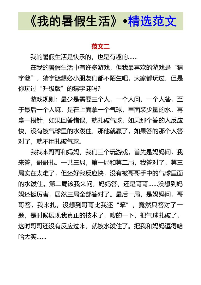 首页 > 全部 > 语文专项 > 《我的暑假生活》•精选范文-小升初语文
