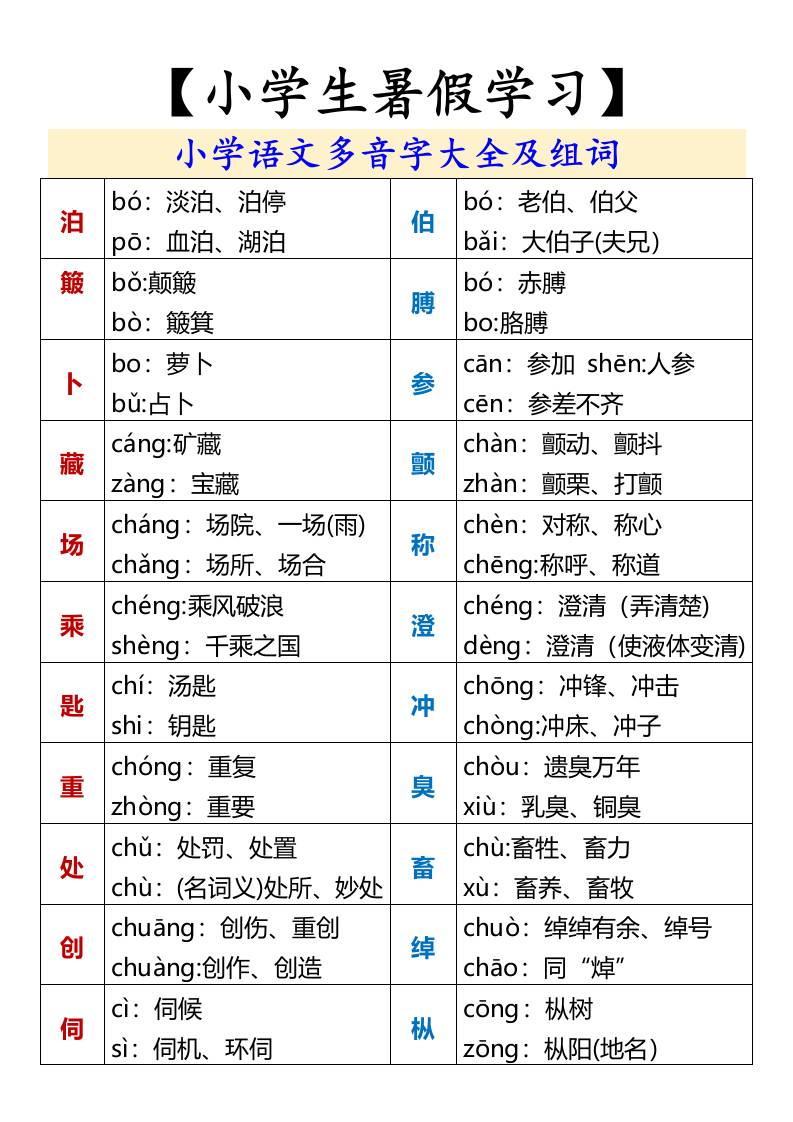 【小学生暑假学习】小学语文多音字大全及组词-小升初语文