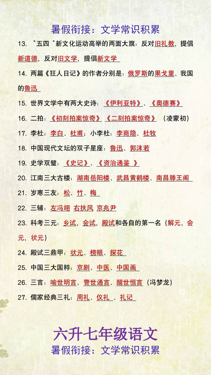 首页 > 全部 > 语文专项 > 六升七年级语文暑假衔接文学常识积累-小升初语文