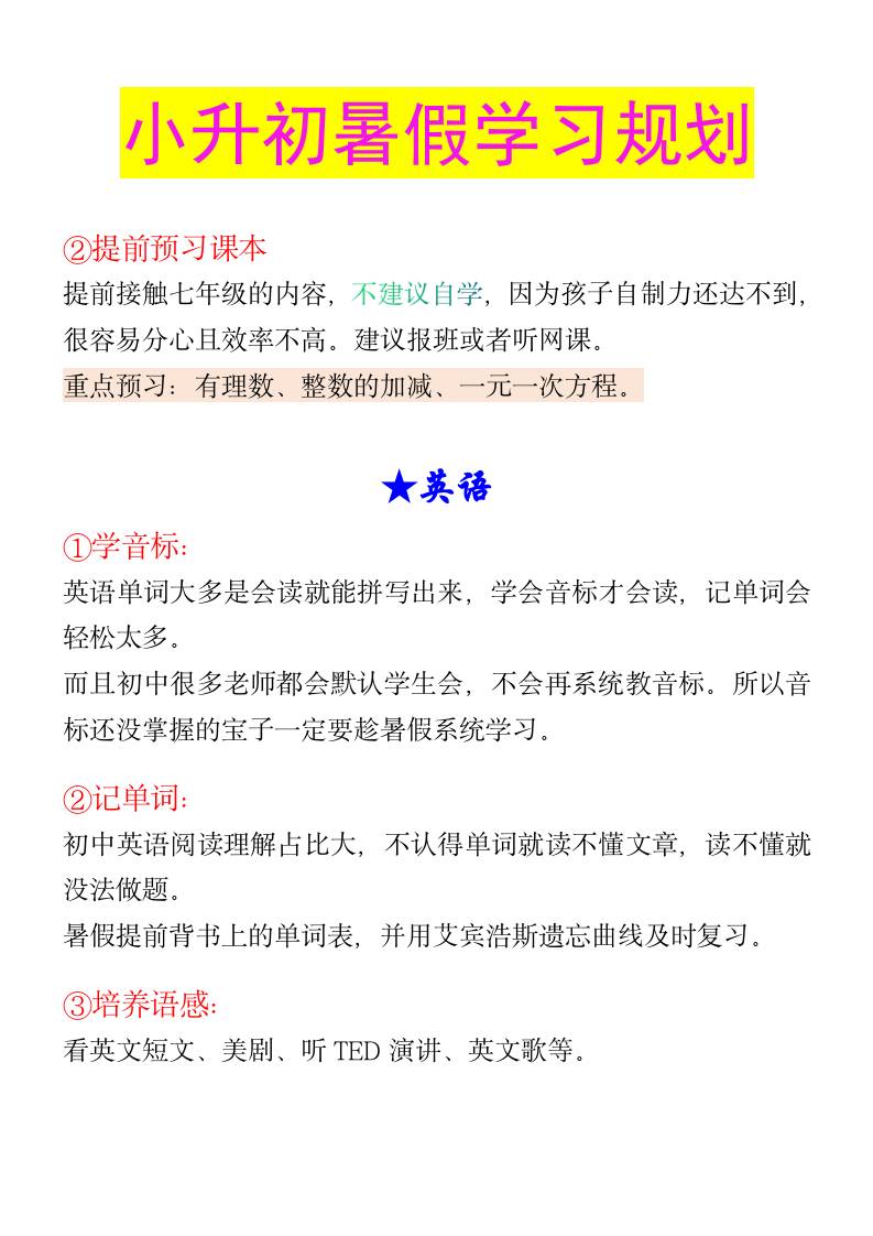 首页 > 全部 > 语文专项 > 小升初暑假学习规划-小升初语文
