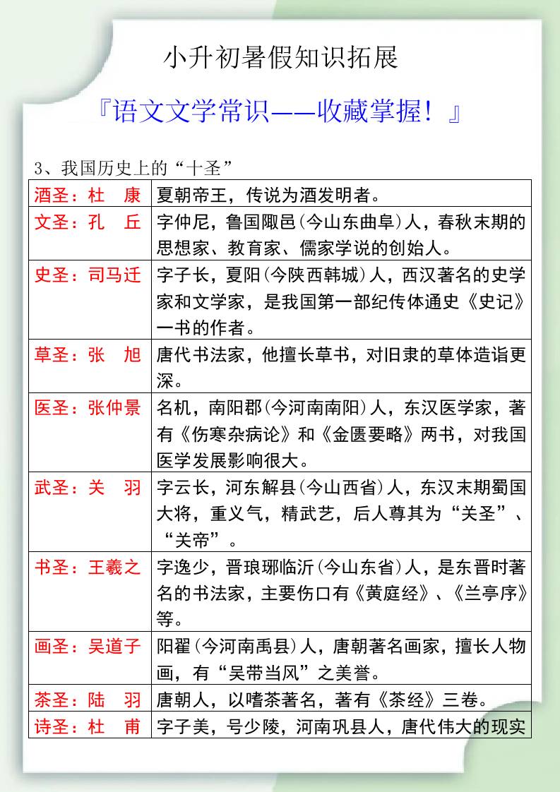 初级 小升初暑假知识拓展之语文文学常识-小升初语文