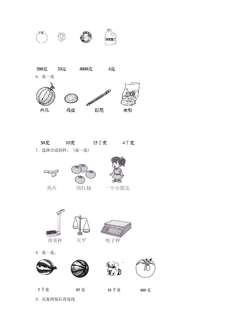 初级 【题型专项特训】三年级数学上册第二单元千克和克专项训练——连线题(苏教版,含答案)