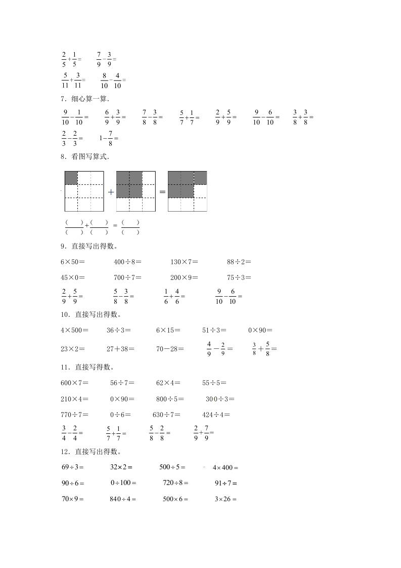 初级 【题型专项特训】三年级数学上册第七单元分数的初步认识(一)专项训练——计算题(苏教版,含答案)