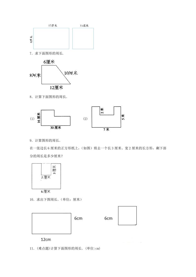 首页 > 全部 > 数学 > 【题型专项特训】三年级数学上册第三单元长方形和正方形专项训练——计算题(苏教版,含答案)