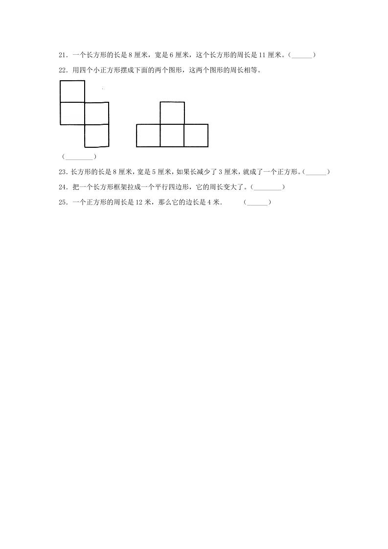 初级 【题型专项特训】三年级数学上册第三单元长方形和正方形专项训练——判断题(苏教版,含答案)