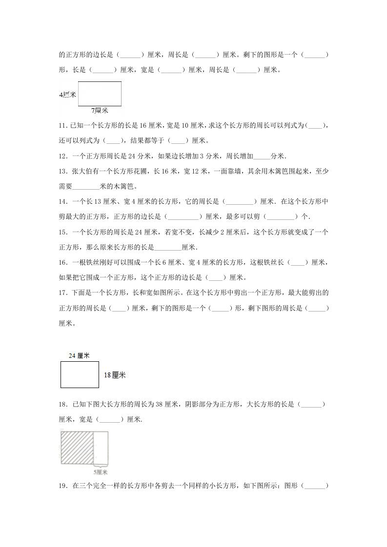 初级 【题型专项特训】三年级数学上册第三单元长方形和正方形专项训练——填空题(苏教版,含答案)