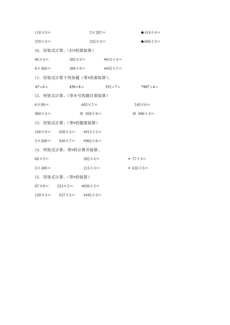 初级 【题型专项特训】三年级数学上册第四单元两、三位数除以一位数专项训练——计算题(苏教版,含答案)