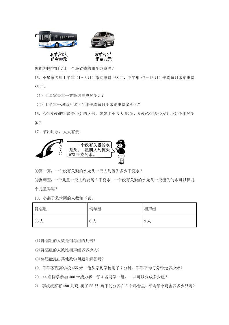 初级 【题型专项特训】三年级数学上册第四单元两、三位数除以一位数专项训练——解答题(苏教版,含答案)