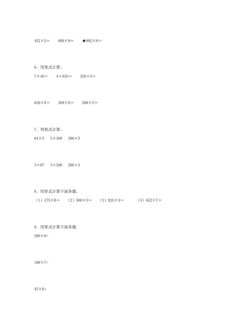 【题型专项特训】三年级数学上册第一单元两、三位数乘以一位数专项训练——计算题(苏教版,含答案)