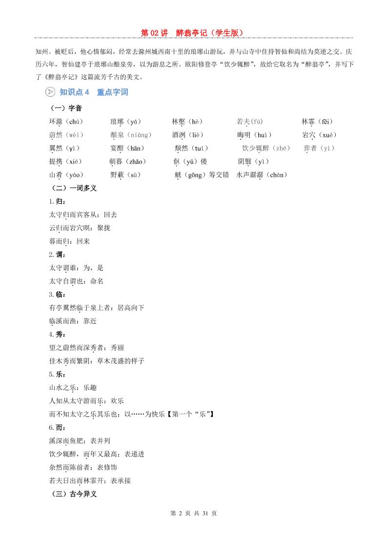 初级 【预习讲义】第02讲 《醉翁亭记》