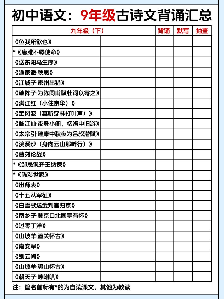 首页 > 全部 > 语文 > 九年级古诗文背诵汇总