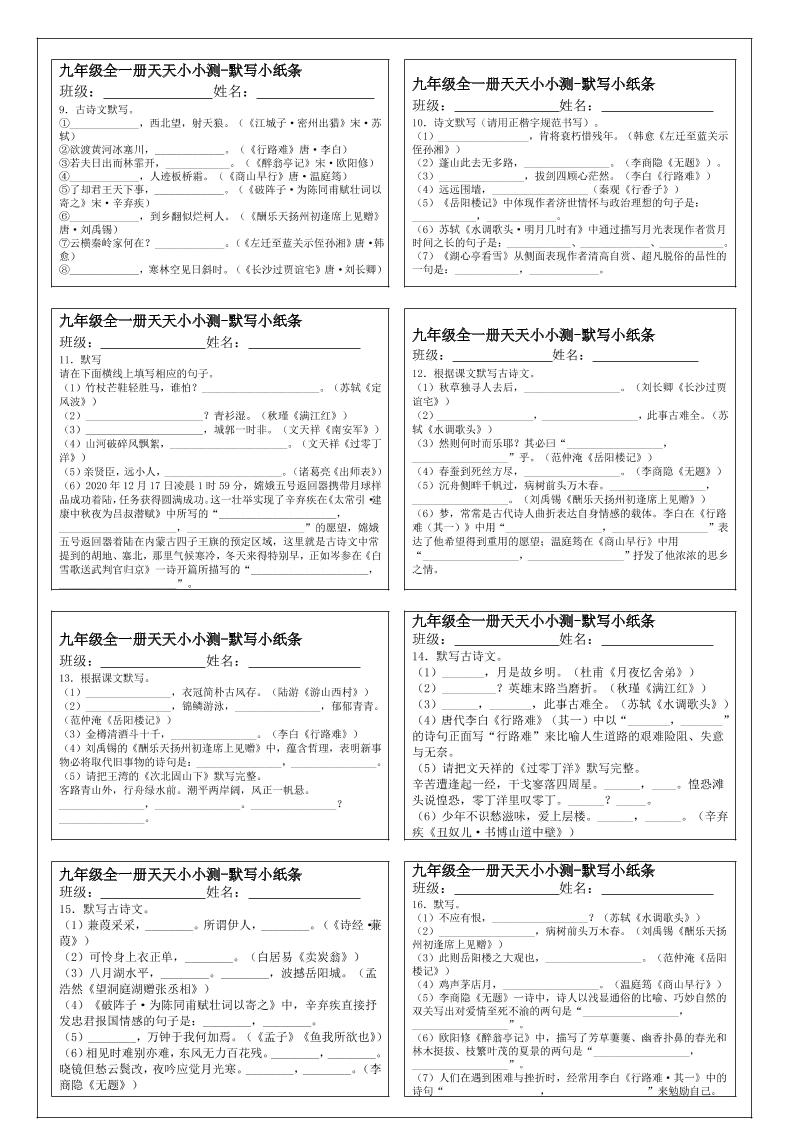 九年级全一册古诗文天天默写小纸条100天100小张【空白】