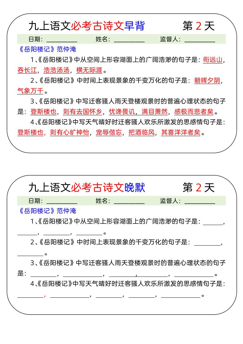 首页 > 全部 > 语文 > 九上语文必考古诗文早背晚默17天