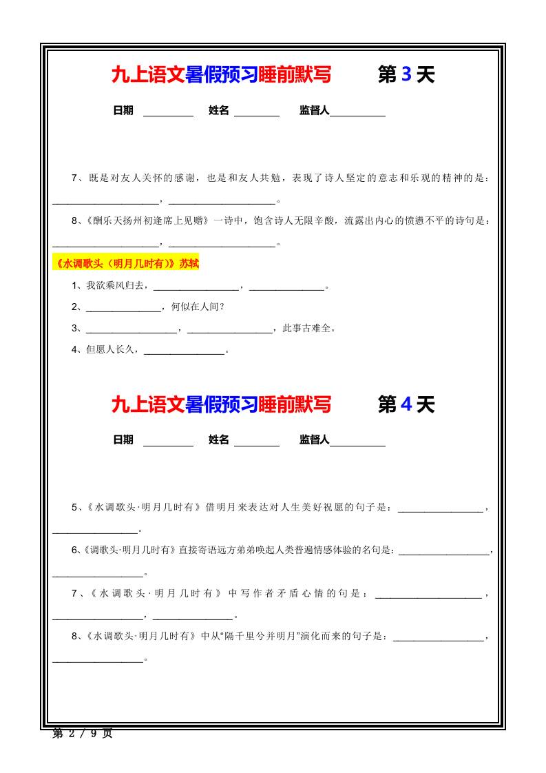 首页 > 全部 > 语文 > 九上语文暑假预习睡前默写12 天