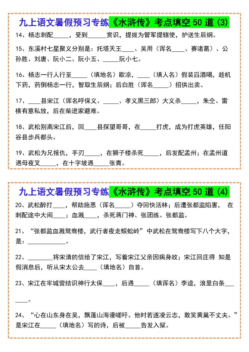 首页 > 全部 > 语文 > 九上语文暑假预习专练《水浒传》考点填空50道