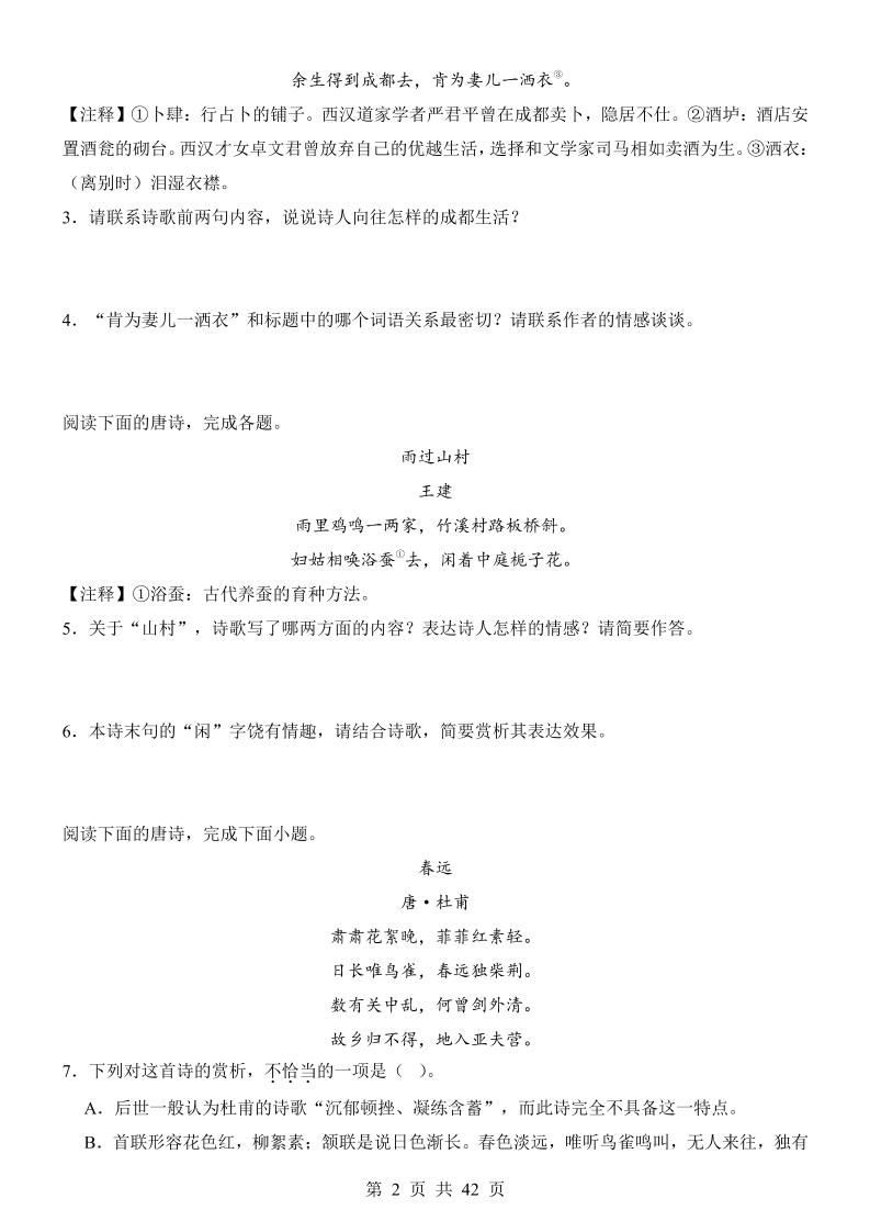初级 暑假作业07:课外文言文阅读、课外诗歌鉴赏