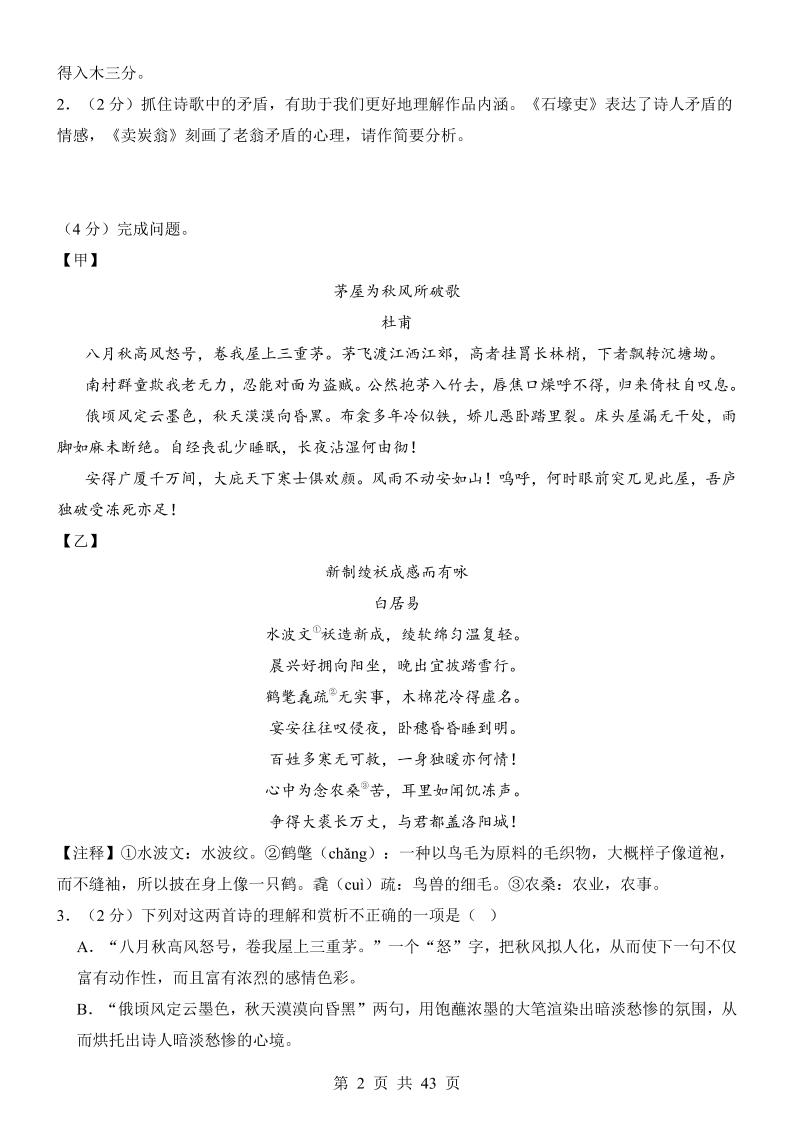 暑假作业08:文言文对比阅读、诗歌对比鉴赏