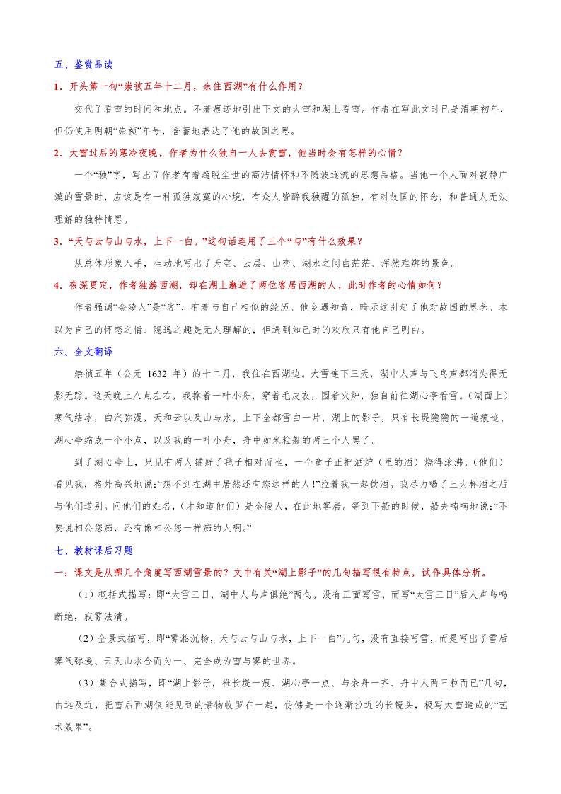 第13课《湖心亭看雪》知识点