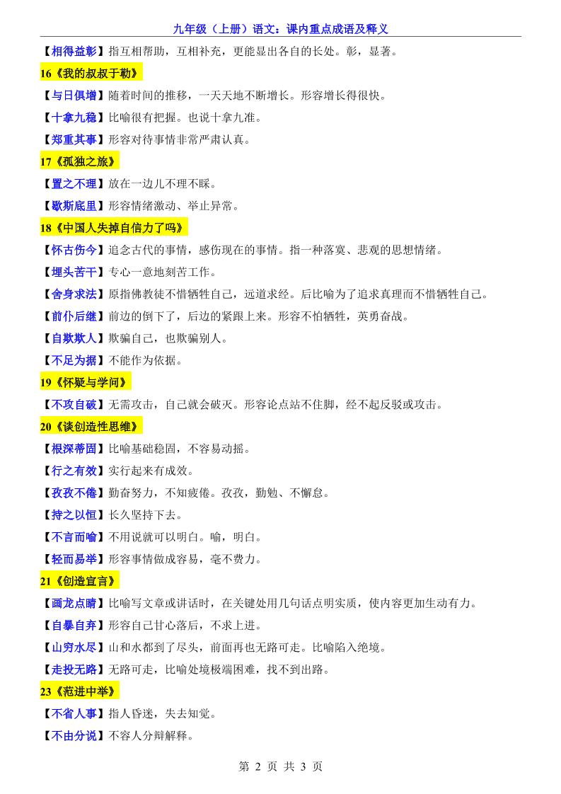 首页 > 全部 > 语文 > 九上语文课内重点成语及释义