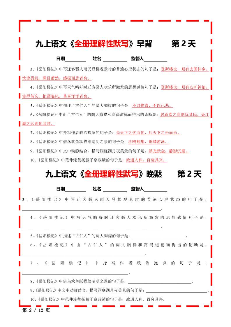 首页 > 全部 > 语文 > 九上语文全册理解性早背晚默11天
