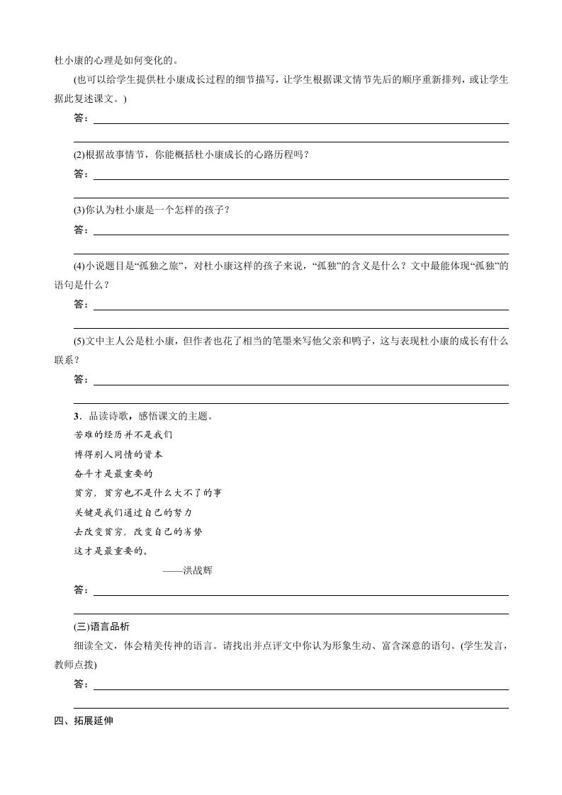 初级 预习-17《孤独之旅》导学案