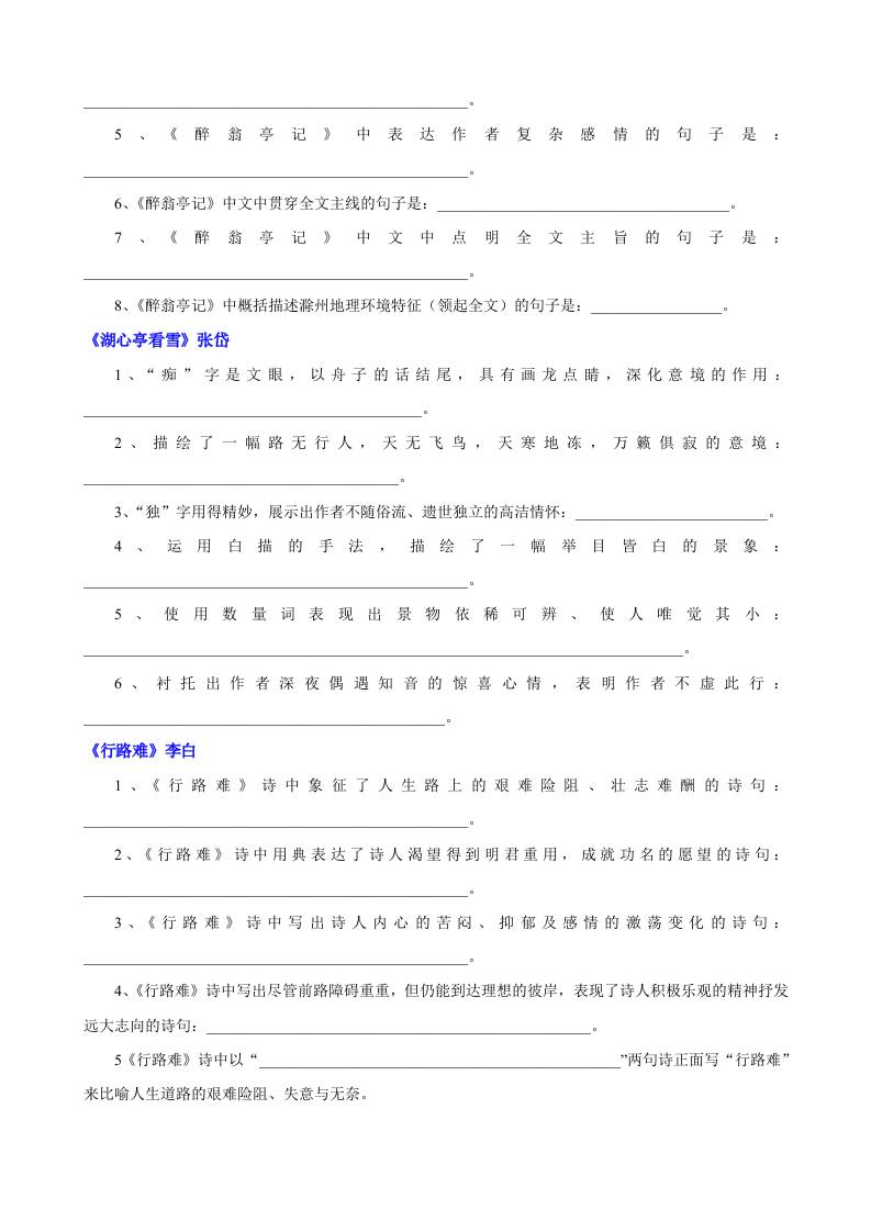 初级 九上语文全册理解性默写