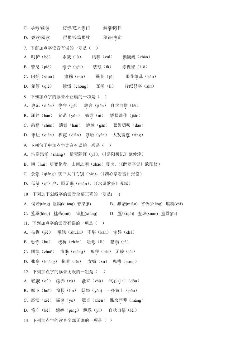 首页 > 全部 > 语文 > 专题01:字音辨析