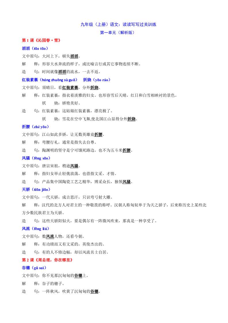 首页 > 全部 > 语文 > 专题01 第一单元读读写写过关训练